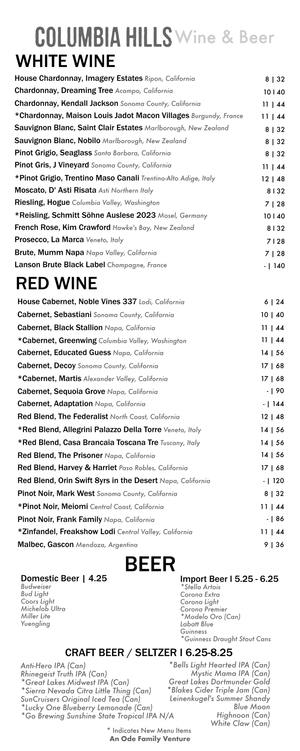 With the arrival of the new season, we are excited to introduce several new additions to our drink menu. This year, we have added a selection of new wines and bourbon for you to enjoy the next time you dine with us.